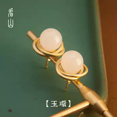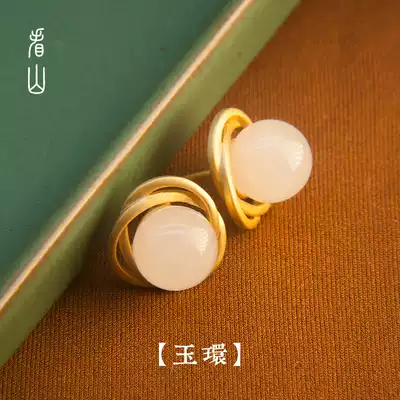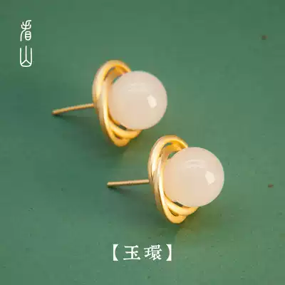 Look at the Mountain) Yuhuan) and Tian Baibi jade quality earrings for female sterling silver jewelry