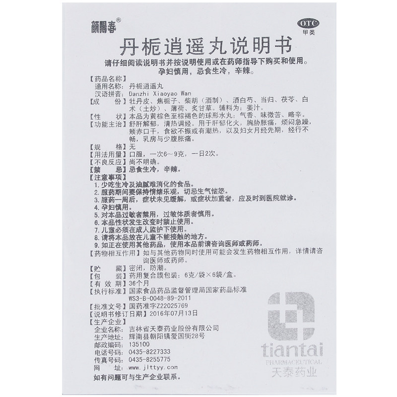 Yan Yangchun Danzhi Xiaoyao Wan 6-bag box with poor breast, less abdominal pain, soothing liver, depression, clearing heat otc