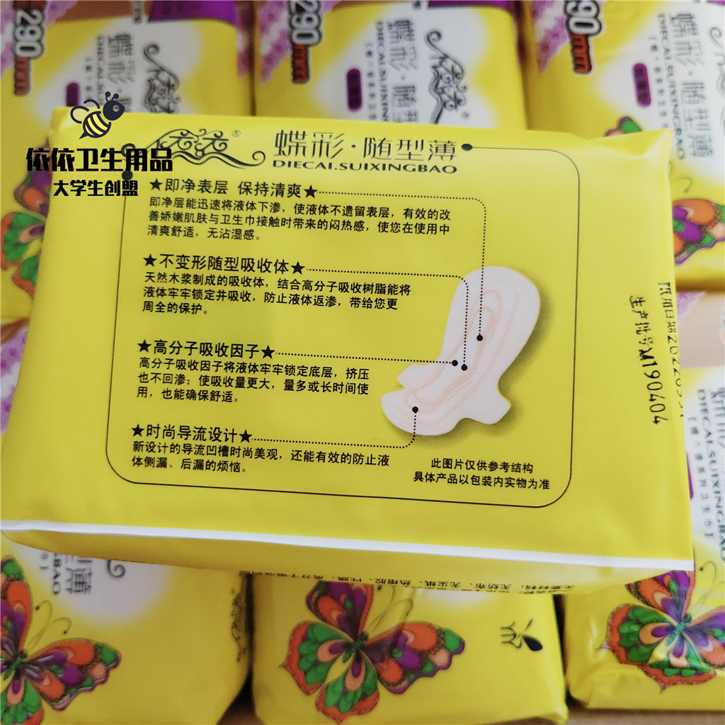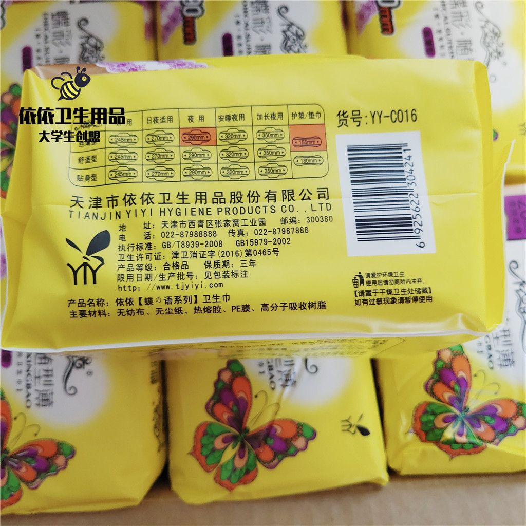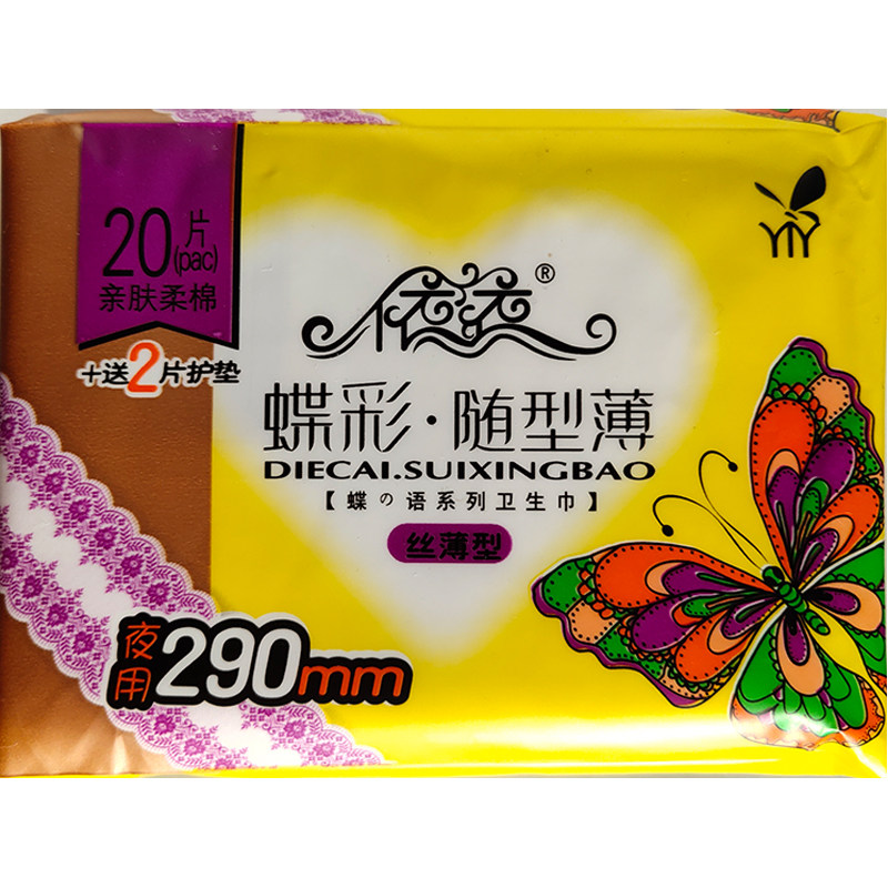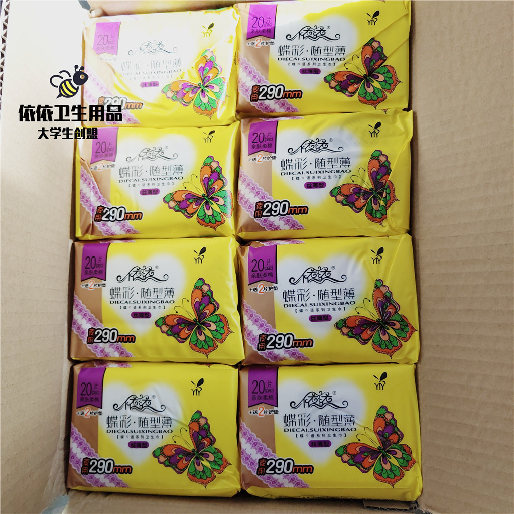 A group of 6 packs of Yiyi Night with cotton soft ultra-thin sanitary cotton 290mm20 sheet 2 pieces of panty cushion butterfly color silk thin