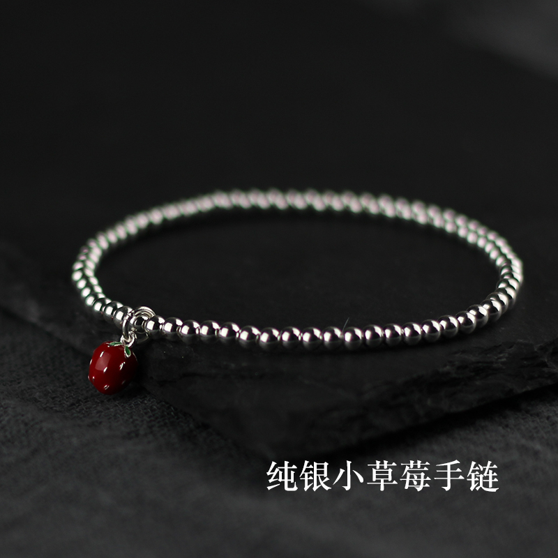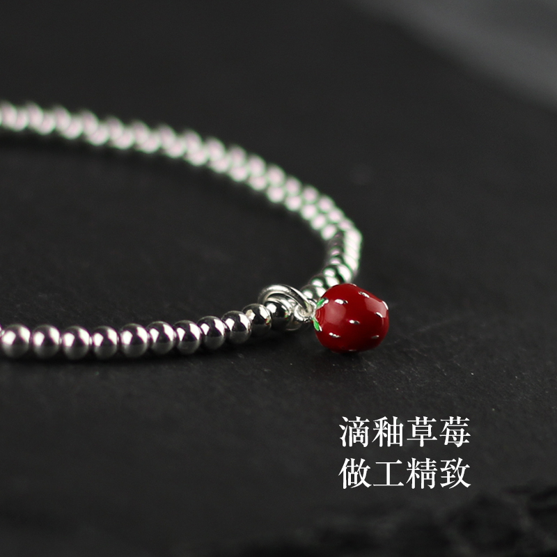 Silver - decorated niche design elastic personality minimal transfer 925 pure silver handicraft cute little strawberry
