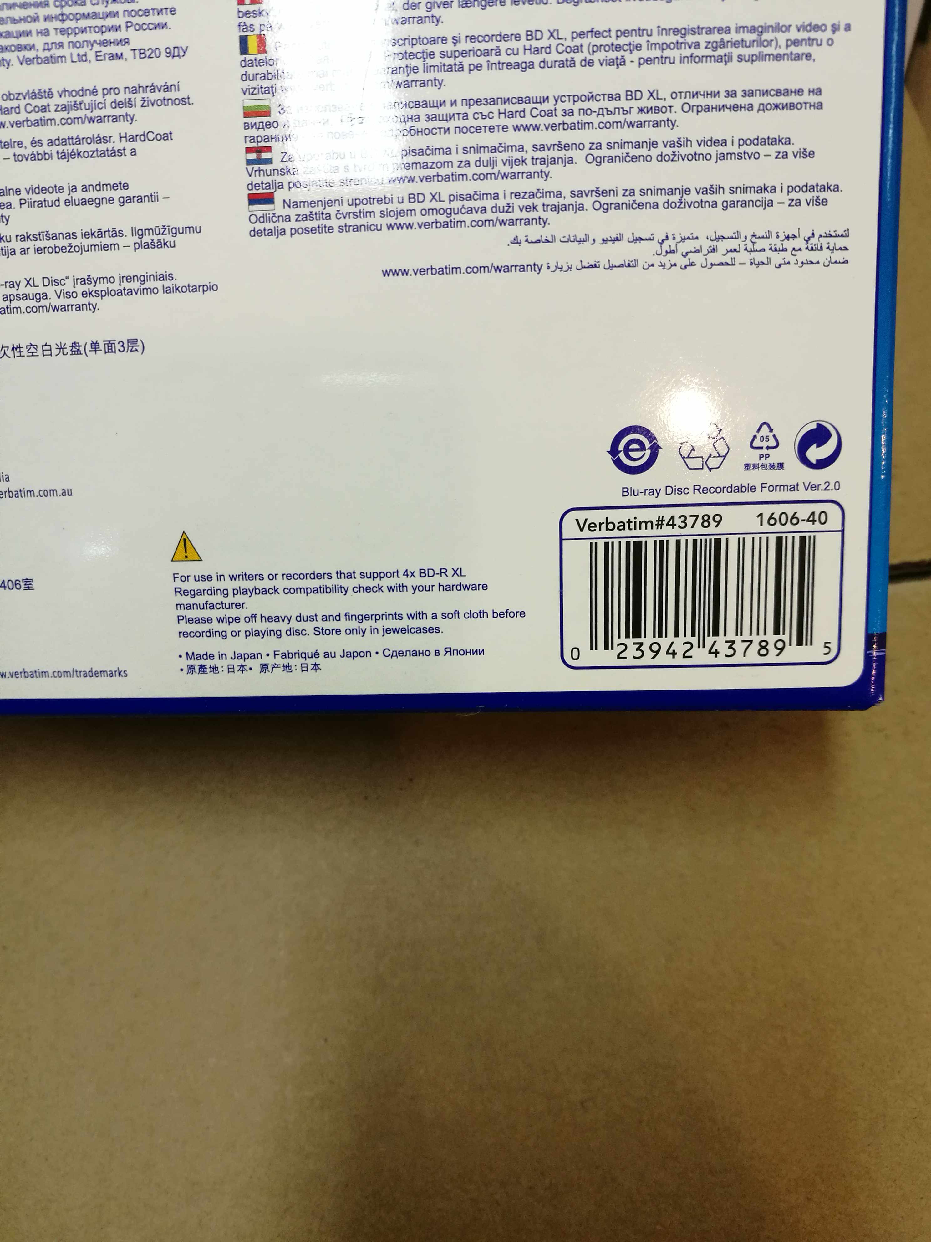 Japanese original Verbatim Blu-ray burning disc BDXL blank printable disc surface BD-R 100G Blu-ray disc