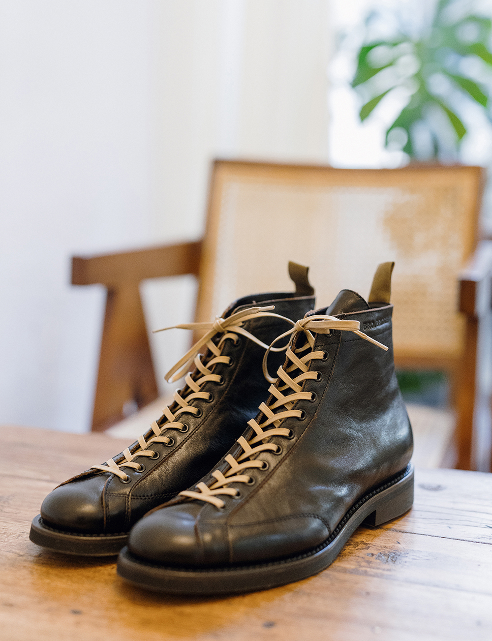 Spot Brother Bridge Japanese black tea core horse skin short face boxer boots American retro