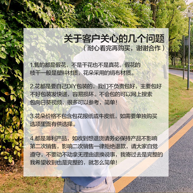 Small sunflower (a 7-1) large sunflower (one 3) small daisy (5 forks 5 flowers) yellow rose (one 5) white rose (one 5) Eugalie leaf (16 fork 64 leaves)