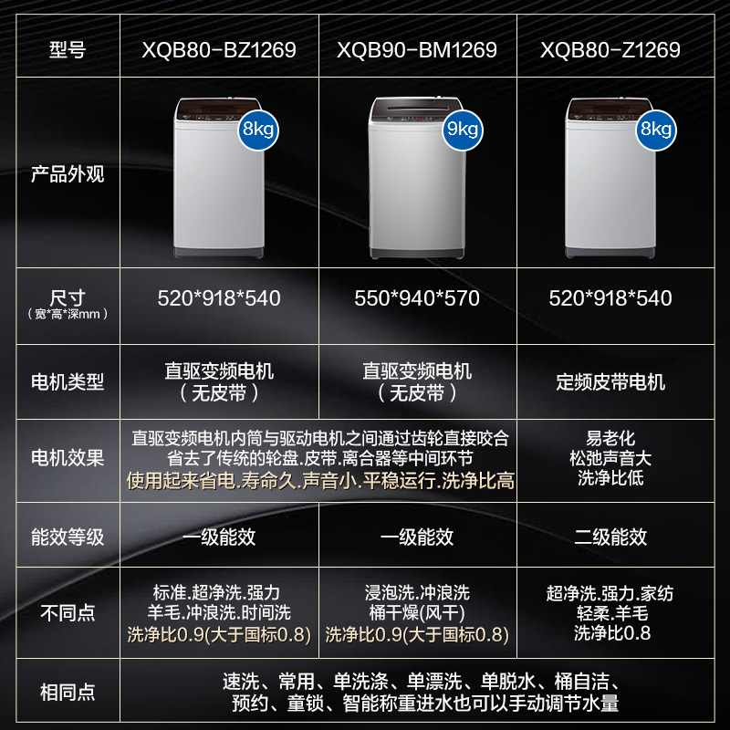 Haier Octakg First-class Frequency Conversion XQB80-BZ1269 Haier Nine Kg First-class Frequency Conversion XQB90-BM1269 Haier ten Kg First-class Frequency Conversion XQB100-BZ