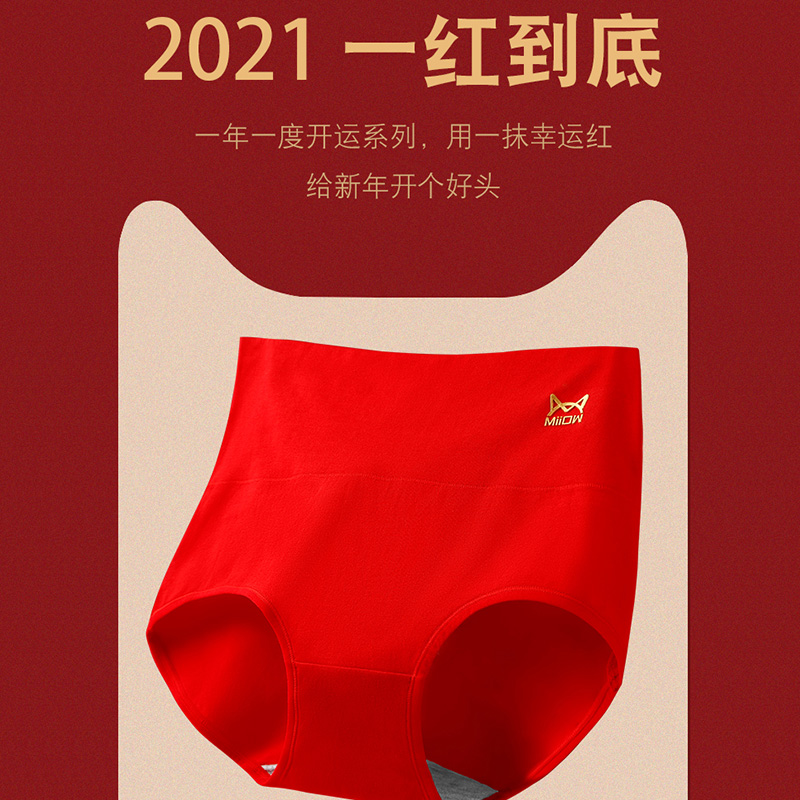 Cat People's red underpants female pure cotton High waist Benn year Female Chinese tiger year middle waist wedding triangle shorts head full cotton