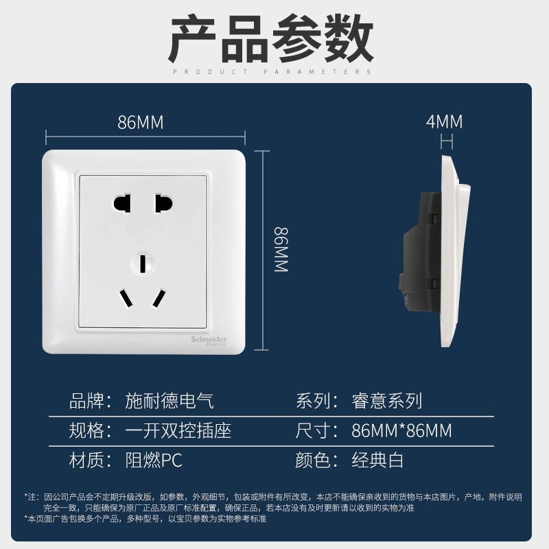 Schneider switch socket multi-control home wall switch panel dark fit 86 type 5-hole wise white power socket