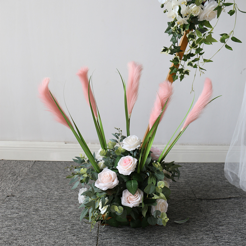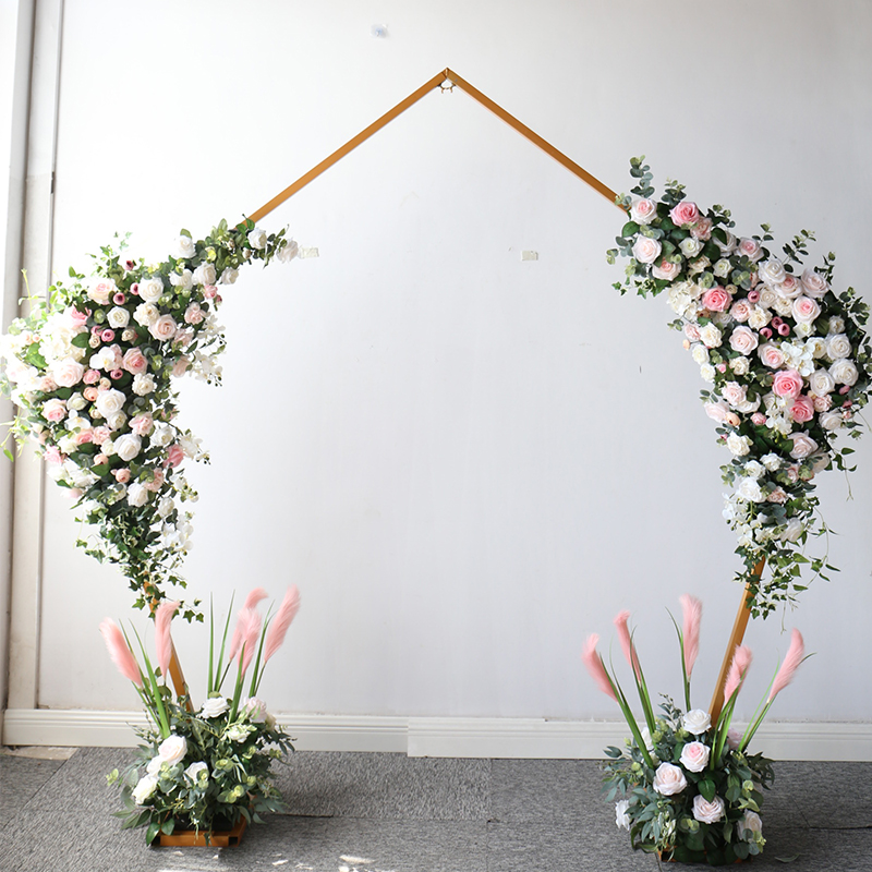 Wedding arch flower door set pink imitation rose shelf pentagonal wedding setup photography background triangle flowers