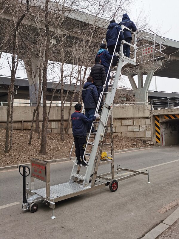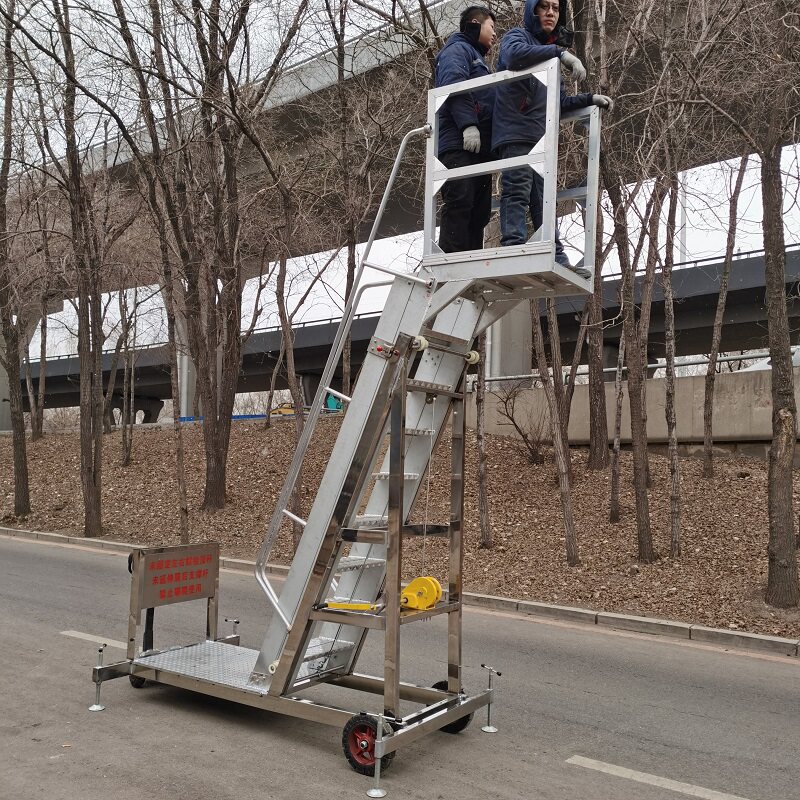 Tank truck special ladder sampling car aluminum alloy stainless steel movable hand-crank telescopic lift climbing platform ladder