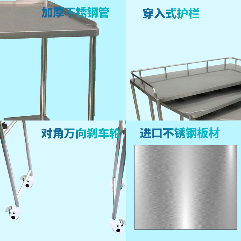 Medical operating room thickened 304 stainless steel single double-lever-tray frame lifting and changing medicine tray trolley instrument bench