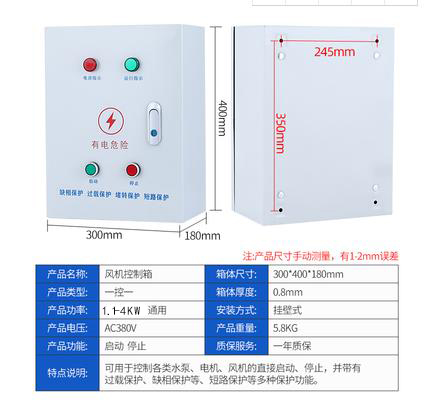 220V ventilator control box 2 2 2 4kw motor control box 220v water pump motor start stop control box