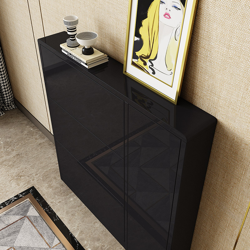 Guyi ultra-thin shoe cabinet Modern simple entrance shoe rack cabinet door foyer cabinet Black paint shoe cabinet ultra-thin storage 17cm
