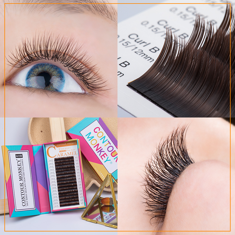 Caramel Chocolate Color Wind Blows Single Root Flat Fur Grafting Eyelash Water Mink Hair Super Soft Double Sharp Deep Brown Natural Emulation