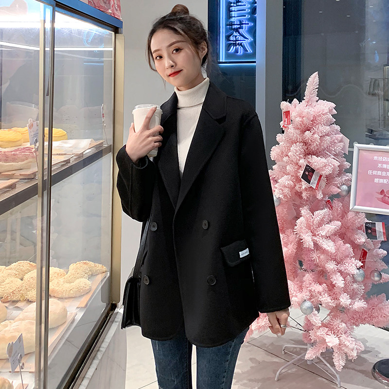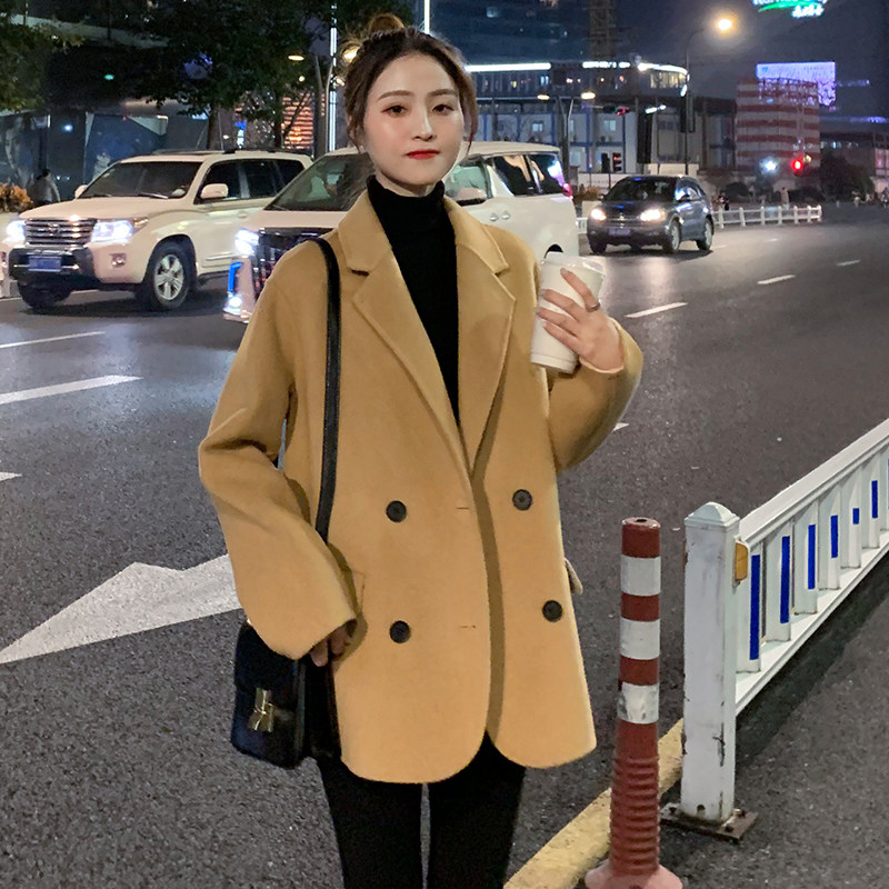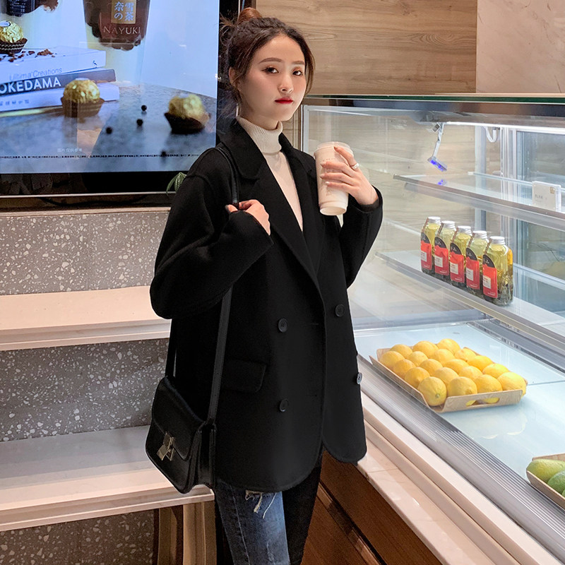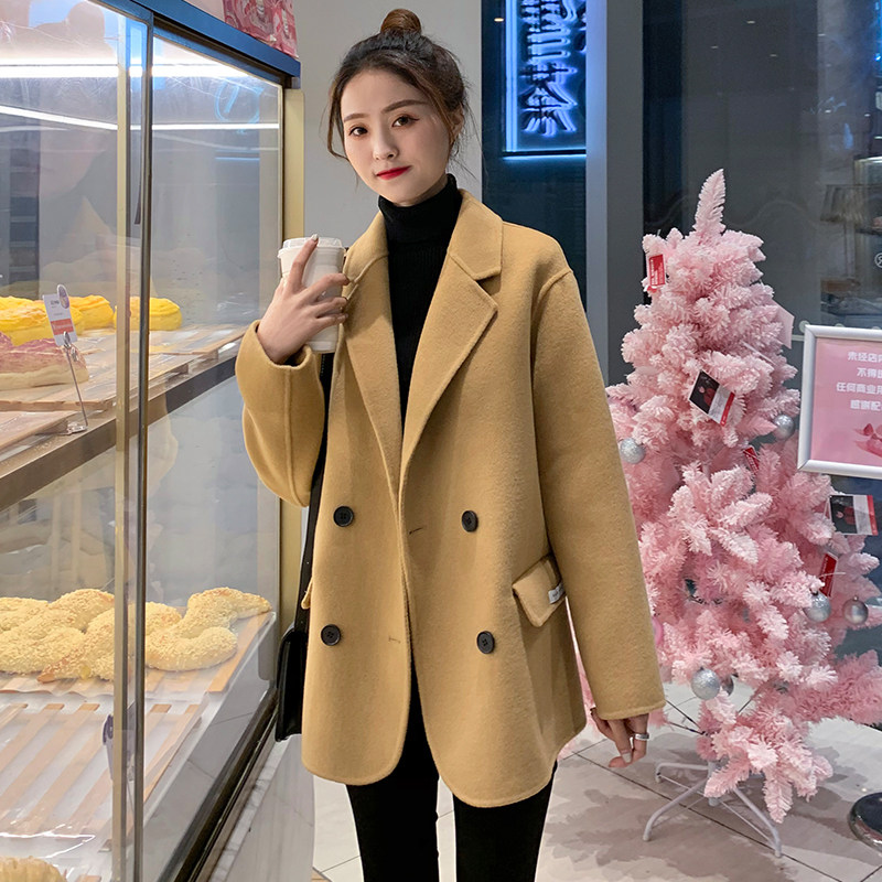 Small suit double face cashmere big coat woman short 2021 Fall new Hepburn Wind little Loose Fur Coats