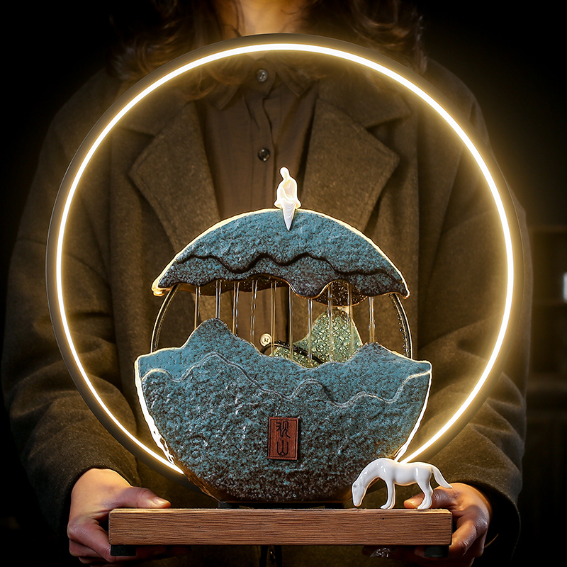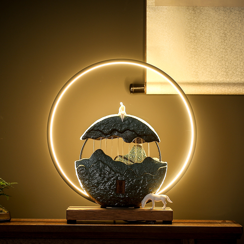Creative with lighting Zen water device ornaments ceramic large home living room Feng Shui lucky new Chinese decorations