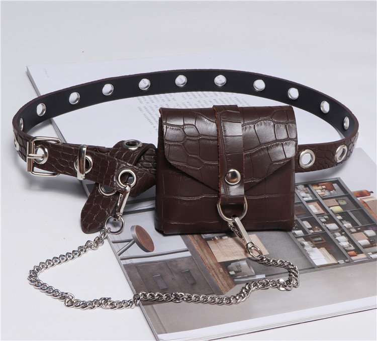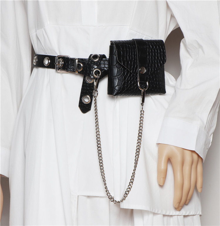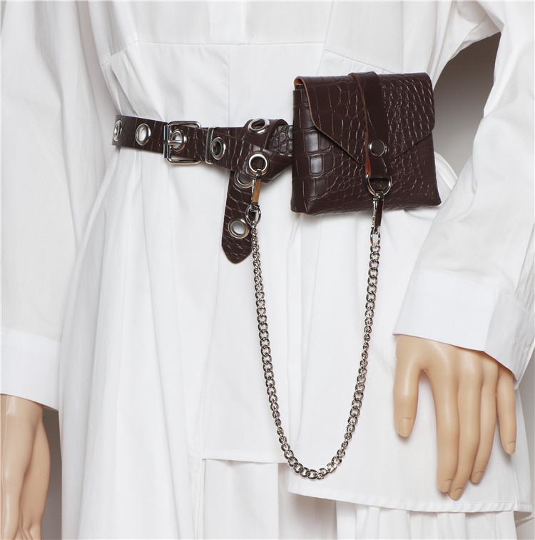 Net red small pocket with belt lady Fashion Mini waist belt type leather belt hanging bag decorated sweater belt wrap
