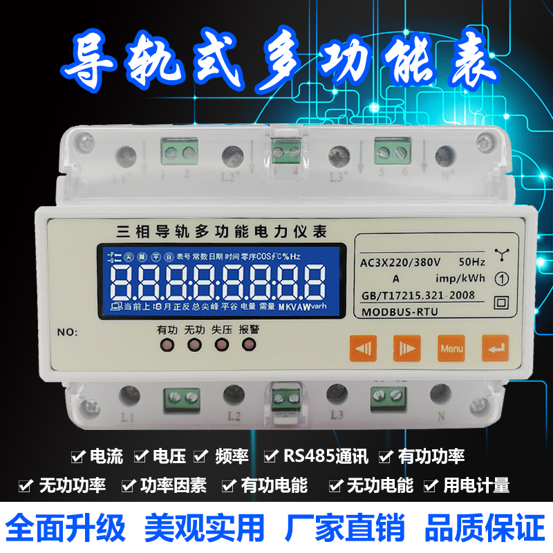 Carrail-type three-phase liquid crystal multifunctional power meter CNIK300E current voltage meritorious reactive energy meter