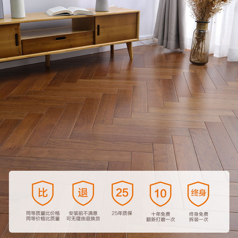 Tiange floor heating solid wood floor Fan Longan pure wood heat-resistant herringbone spell process lock installation method