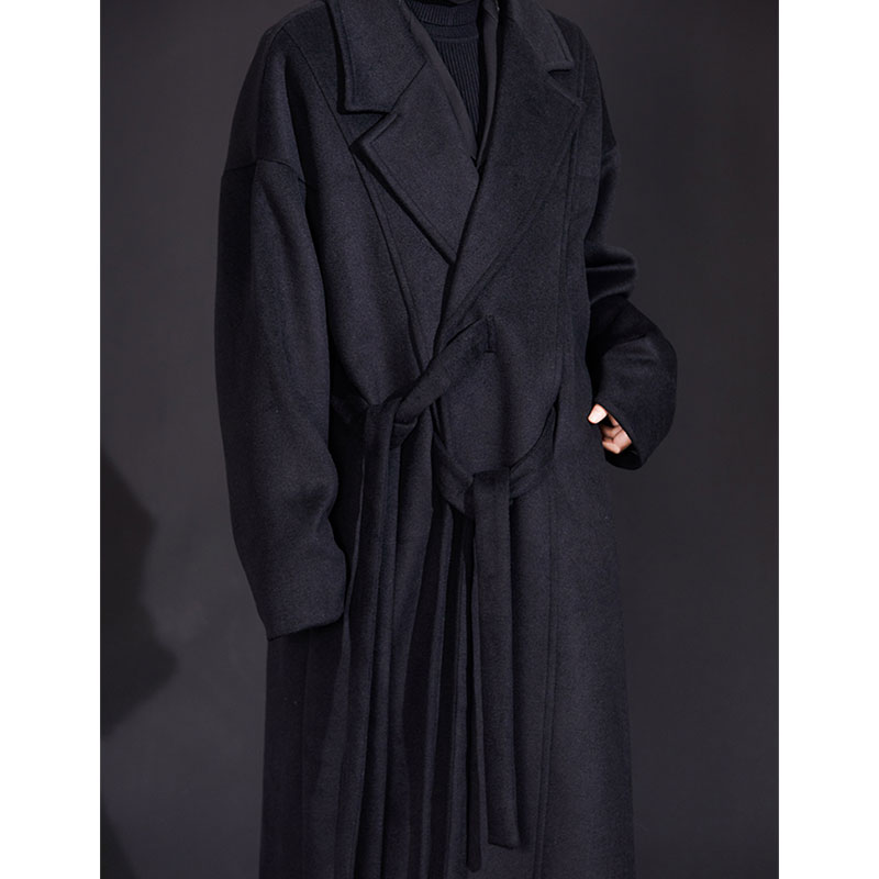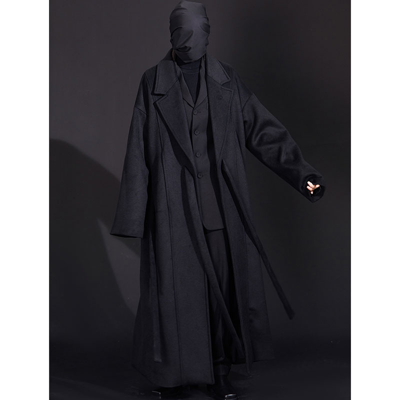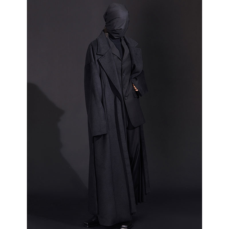 VAPOURBLUE original design dark wool fleece waist coat men's and women's winter long version over-the-knee coat