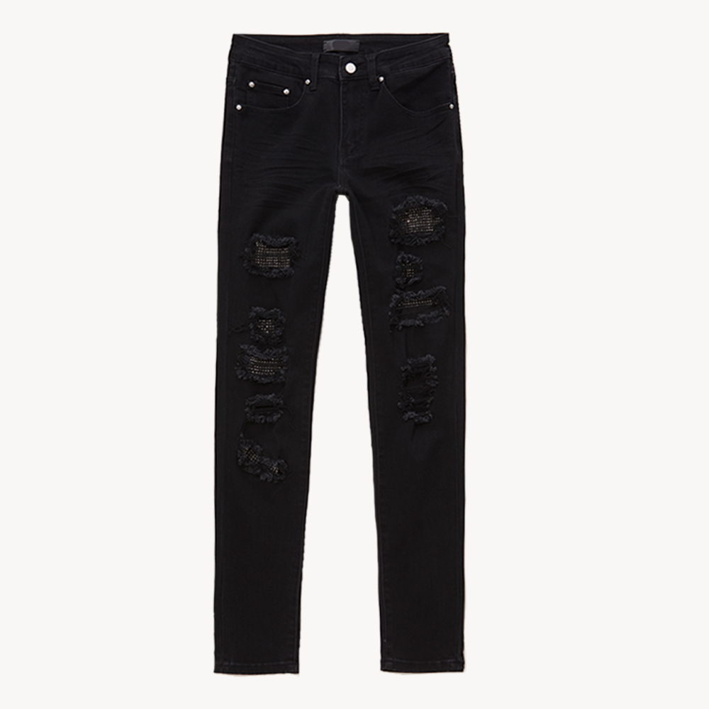 Chao brand 20SS fog Amiri black diamond-encrusted stretch jeans high street hole men and women couples long pants