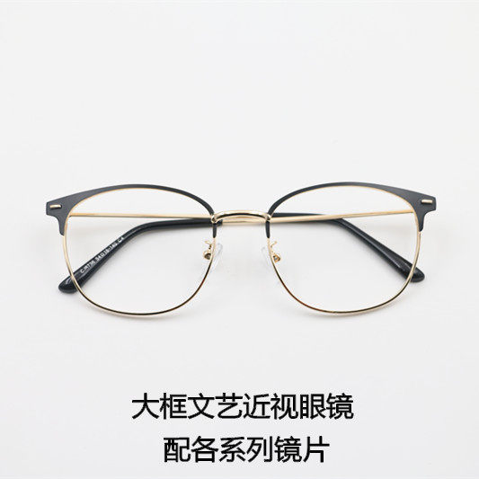 Matching large frame male and female myopia glasses radiation protection flat light finished product with lenses 0-75150225300400 degrees