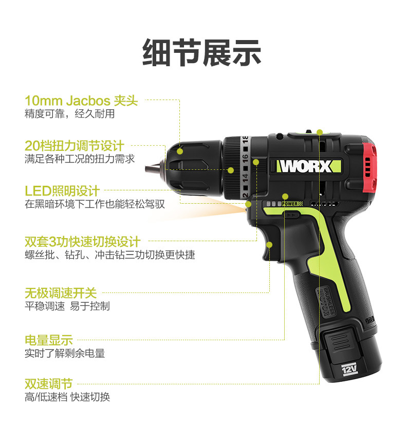 Wekse industrial-grade wu130 lithium electric brushless shock drilling 128 multifunction electric drill charging transfer power tool
