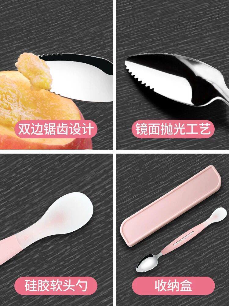 Baby Cutlery Cutlery Baby Cutlery Apple Clay Spoon Suit Sidefood Tablespoon Child Silicone Scrape Fruit Clay Tool