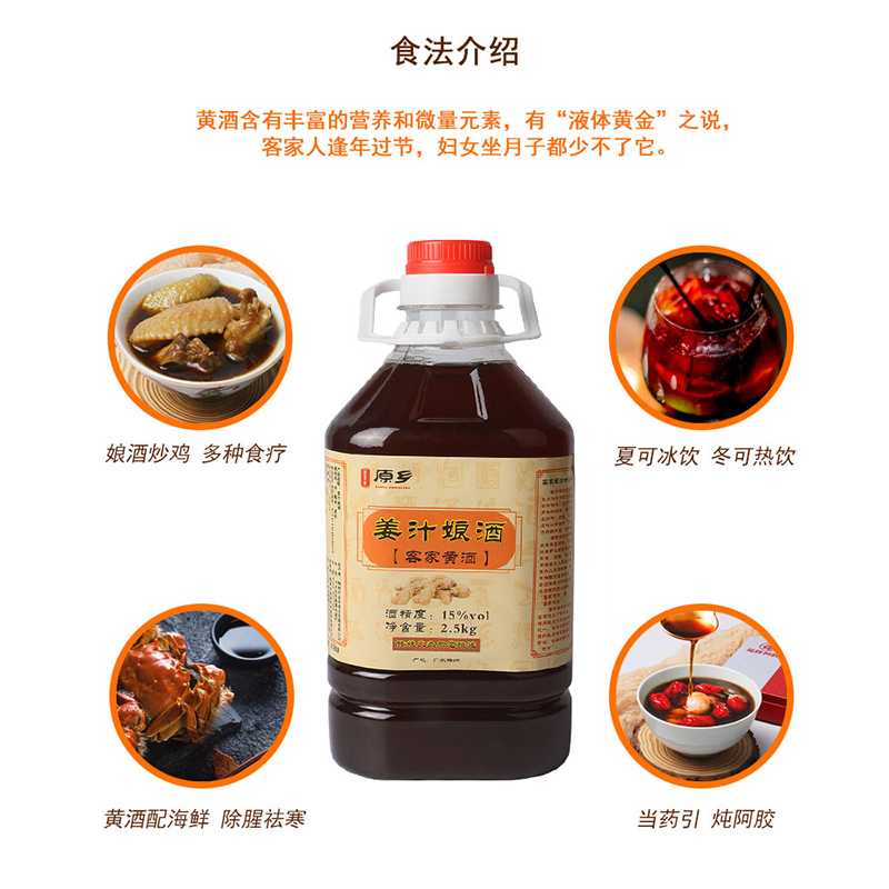 Hakka Rice wine Niang Wine Guangdong Meizhou authentic Hakka fire-roasted Ginger juice Niang wine Glutinous rice moon wine 5 pounds of rice wine