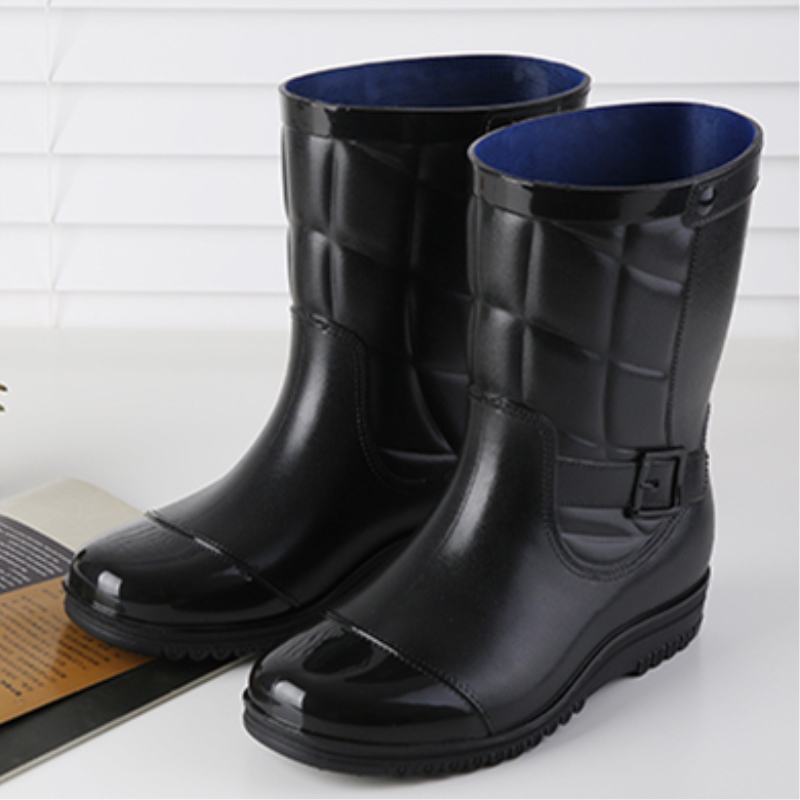Rain boots men's autumn and winter thick velvet mid-tube waterproof non-slip short tube plus velvet water boots overshoes waterproof boots kitchen work rubber shoes