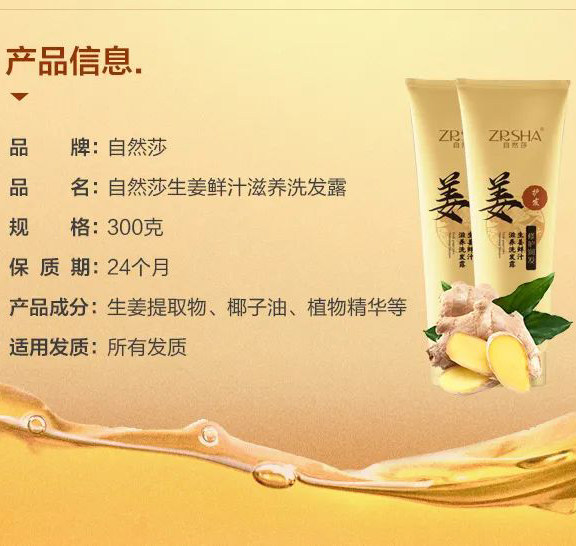Juxuan Natural Sha Ginger Fresh Juice Nourishing Shampoo 300g ginger shampoo The shampoo is integrated with a soft and smooth hair