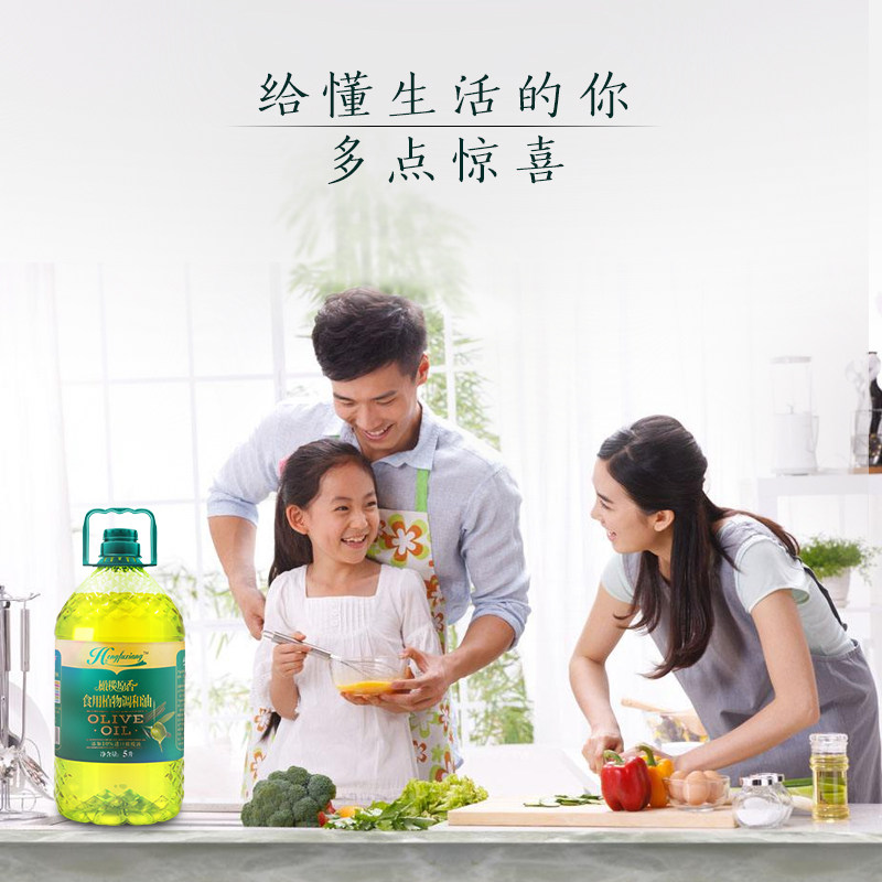 Hongfuxiang olive oil edible oil blended oil vegetable salad oil large barrel edible light oil fume fried vegetable oil 5L*4