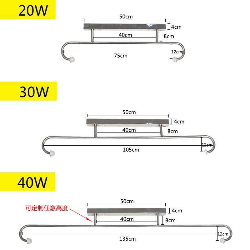 High Boron 20W Bent Pipe Stainless Steel Bracket Complete High Boron 30W Bend Stainless Steel Bracket Complete High Boron 40W Bent Pipe Stainless Steel Bracket Full Set Quartz 20W Bend Pipe Stainless Steel Bracket Complete Quartz 30