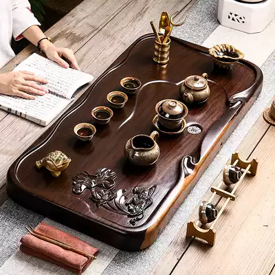 Solid wood tea tray whole ebony household living room Chinese tea making set Square drainage large Kung Fu tea sea