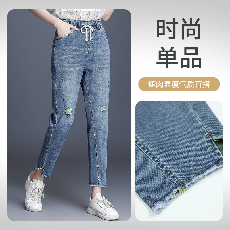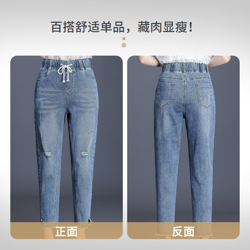 Zixuan 2020 middle-aged fashion straight casual jeans Mom winter elastic elastic high-waisted warm trousers