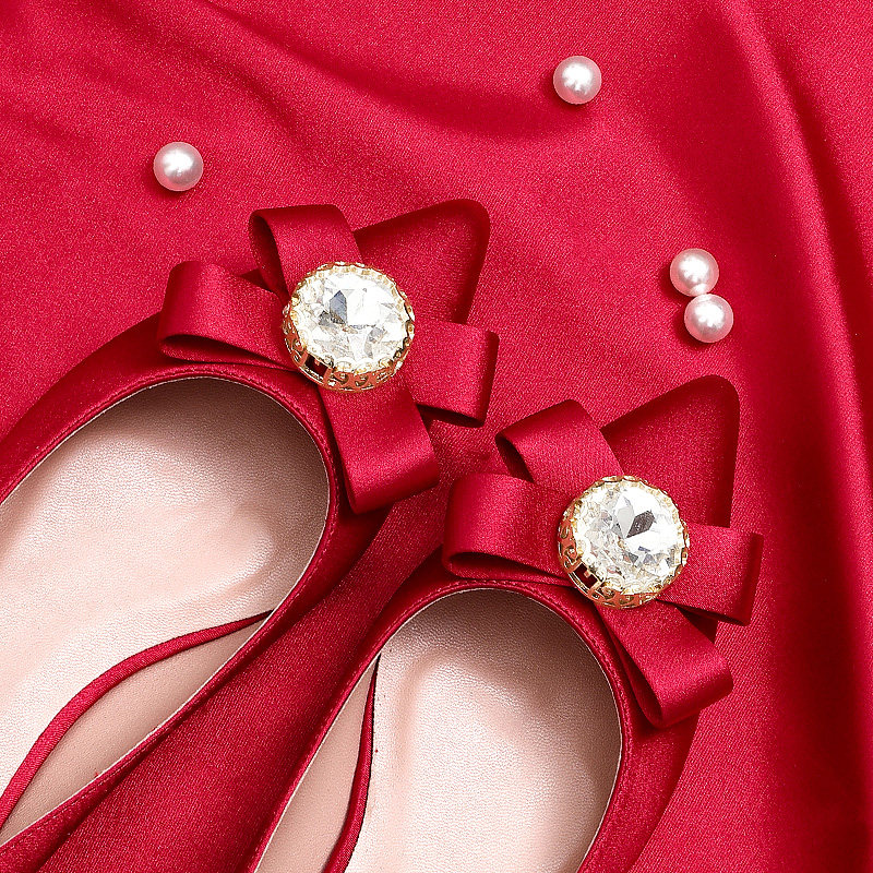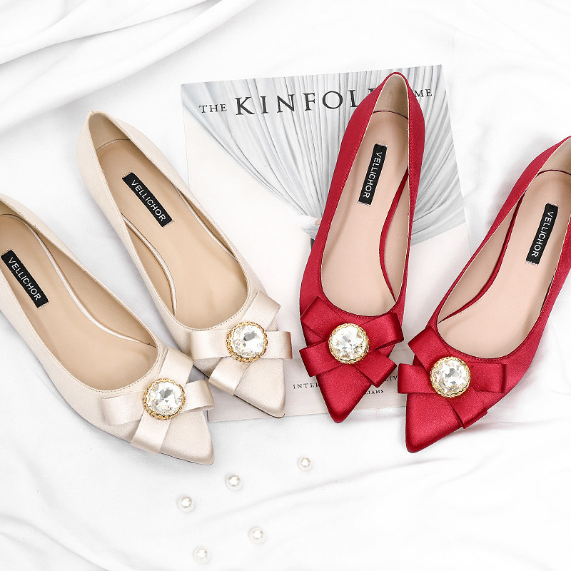 Wedding shoes female 2019 new bride bridesmaid Xiuhe shoes pointed toe rhinestone sexy bow bag shoes red flat shoes