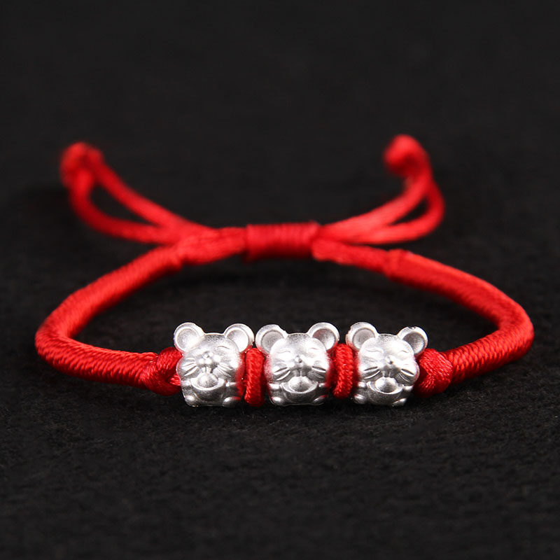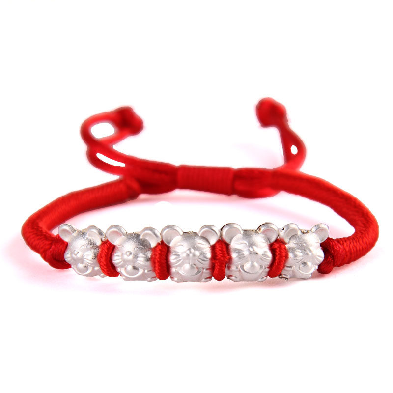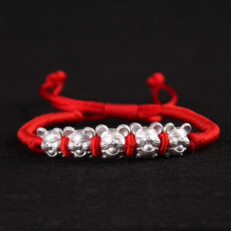 Five rats transport money bracelet five lucky mice this year gift is a rat silver bracelet foot silver red knitting hand rope