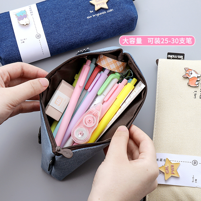 Xiaoyu classmates Korea simple large capacity canvas pencil bag Boys and girls primary school students pencil box Net red Japanese cute ins wind Junior high school students high value stationery box 2021 new popular