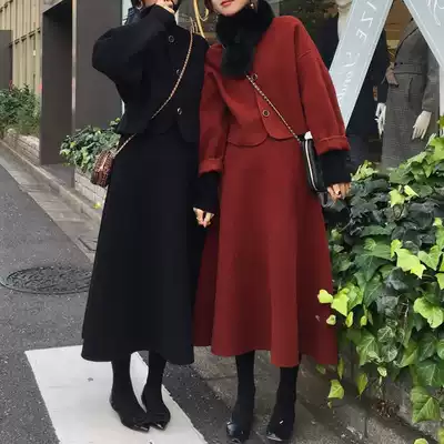 Red jacket skirt (Hyuna Hong Kong style retro street chic) Black jacket skirt 0 (Retro gentle wind suit can be salt can be sweet fried street temperament suit) 8391 black knitted play