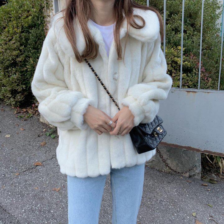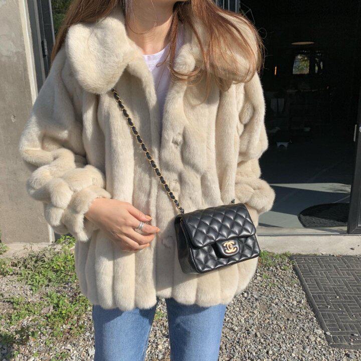 Winter new Korean version loose plush imitation leather grass coat Medium and long version of the girl's lamb coat short thick