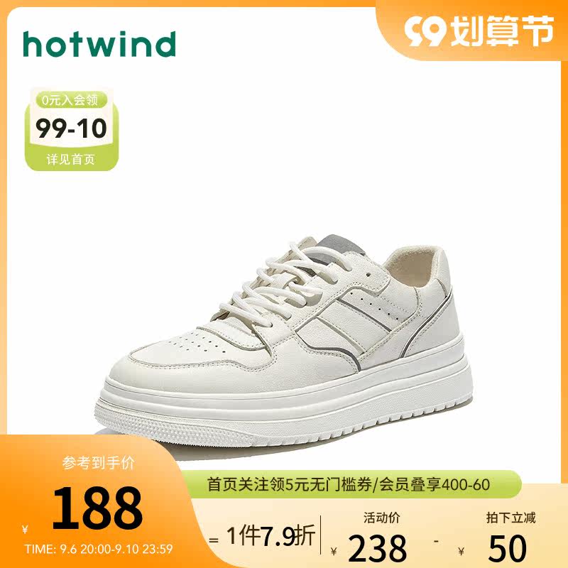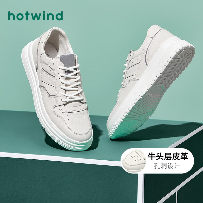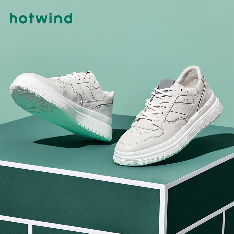 Hotwind hot wind men's shoes 2020 spring new leather small white shoes men's Korean version all-match trend board shoes casual