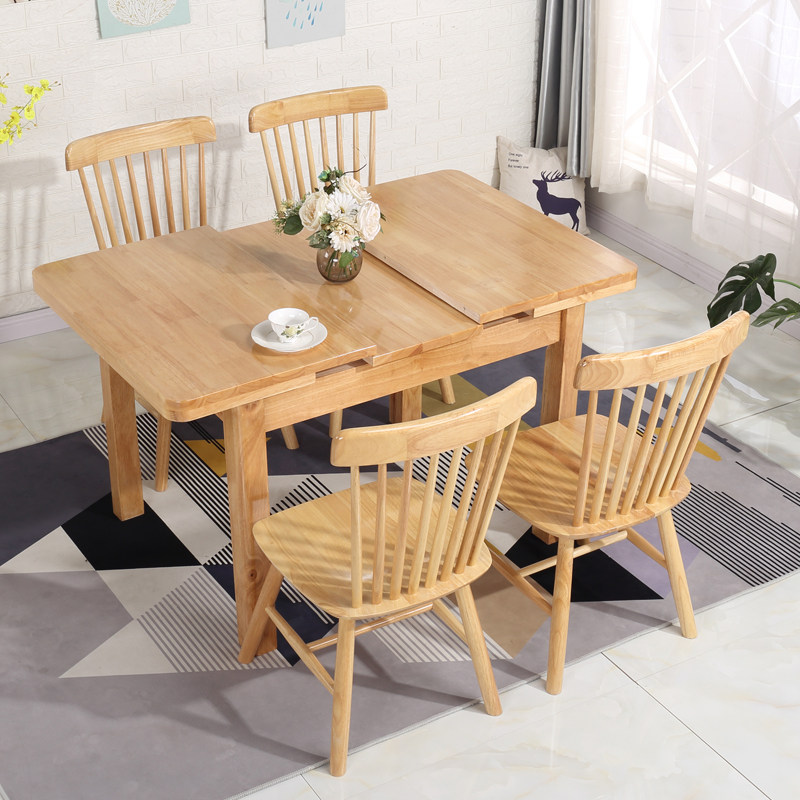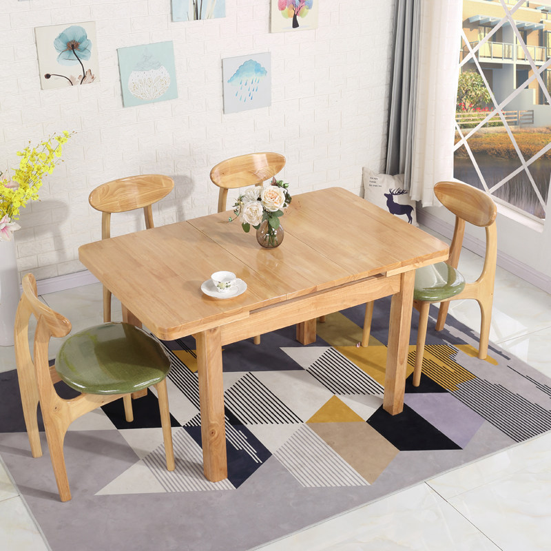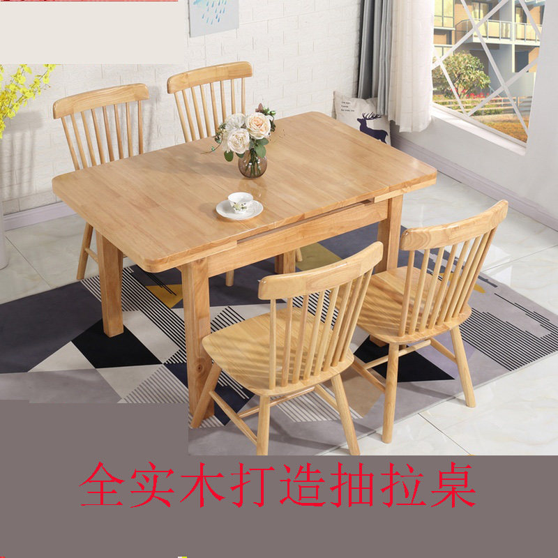 Chinese style all solid wood dining table and chair combination Internet celebrity light luxury small apartment multifunctional retractable household rectangular dining table