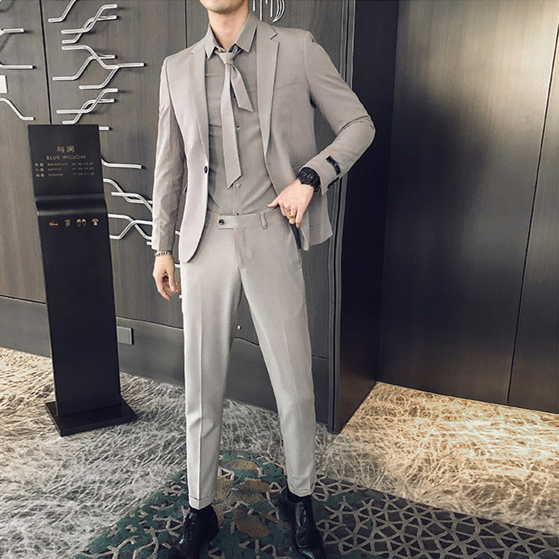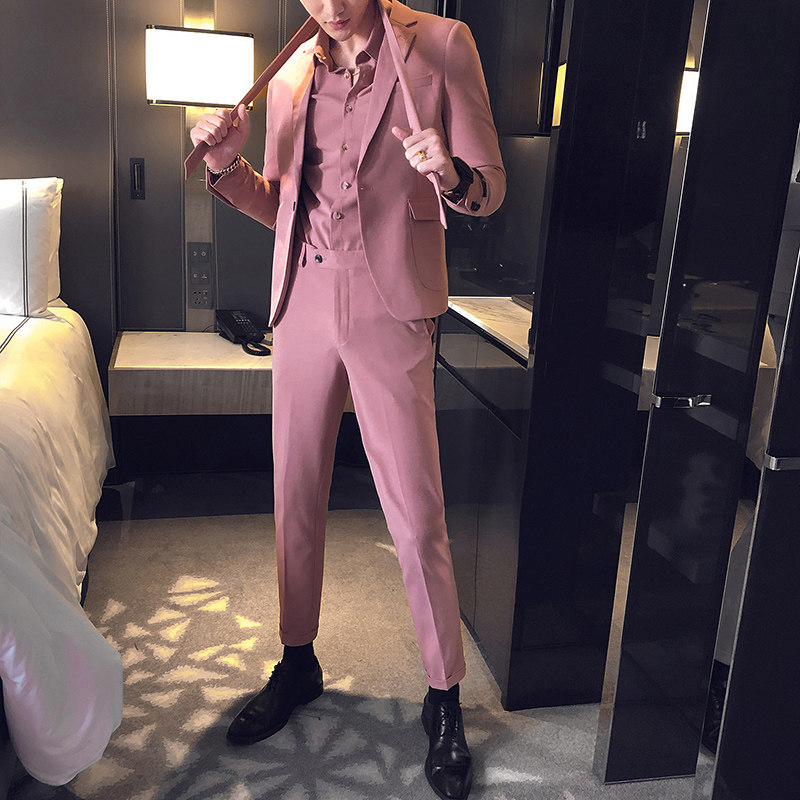Business positive dress Western suit with shirt suit men's three sets of trends uppie handsome and Korean version casual suit jacket