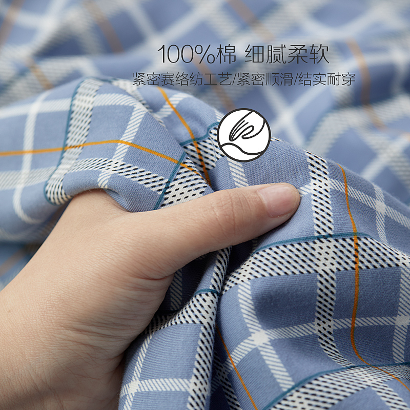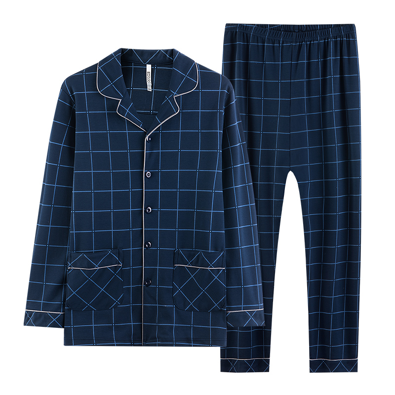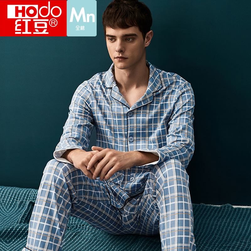 Red Bean Men's Pure Cotton Pyjamas Long Sleeves Large Size Size Youth Plaid Spring Summer Breathable Full Cotton Casual Home Suit Men