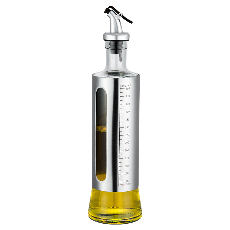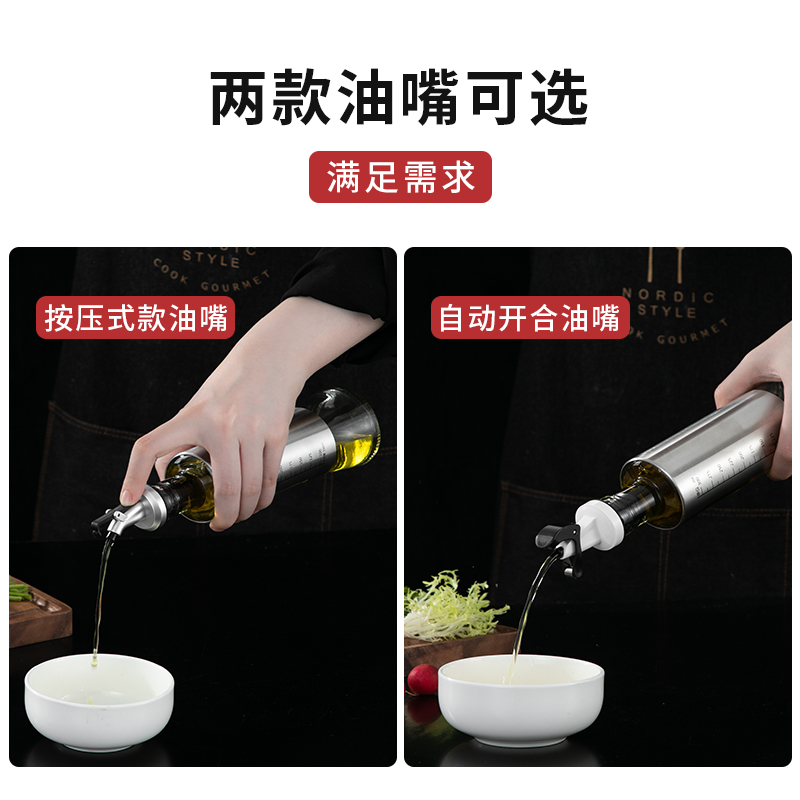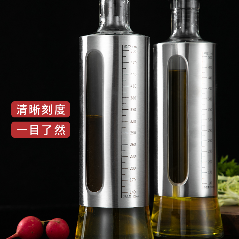 Oil bottle stainless steel household kitchen large transparent glass soy sauce vinegar bottle seasoning bottle lead-free leak-proof oil pot set