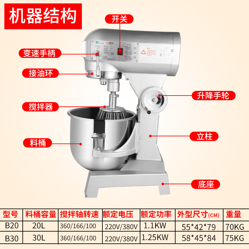 Commercial and facater B20 b30 mixer tri-gear b15 Multi-functional egg-machine kneading machine filling machine cream machine