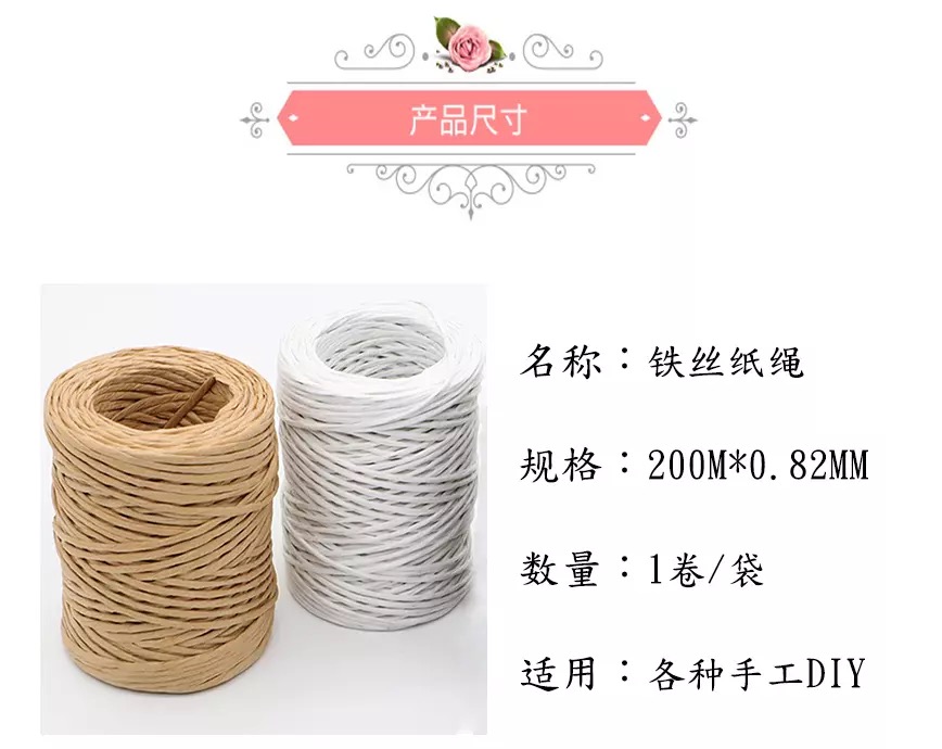 Wire paper rope 200 meters flower art with flower bouquet handmade DIY cable tie rattan weaving paper rattan packaging material