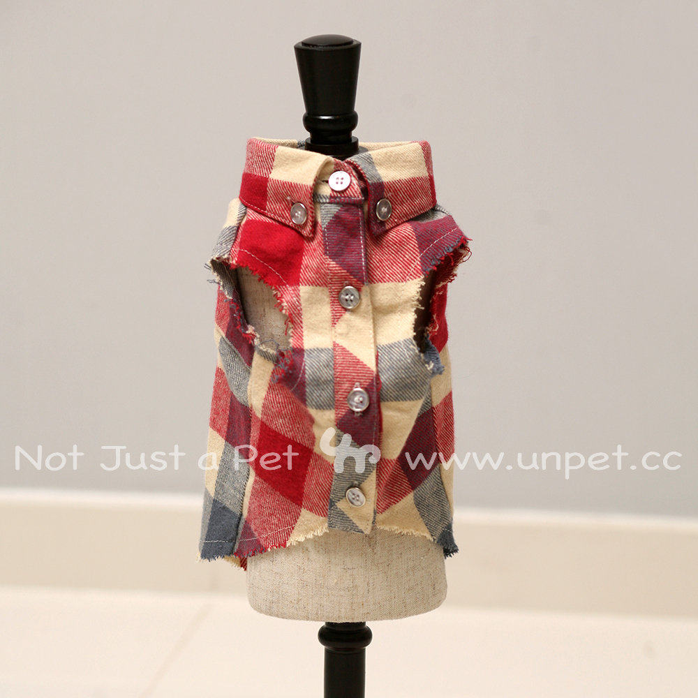 UNPET Baojuan pet puppy dog clothes Japanese denim plaid elegant brushed edge vest shirt vest