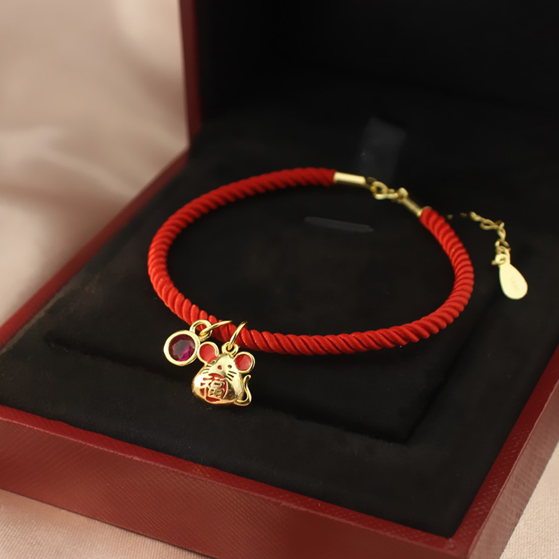 This Life Year Little Mouse Red Rope Hand Alchemy sins Small crowdDesign Merchants Transit Rat Year Zodiac Weave Hand Rope