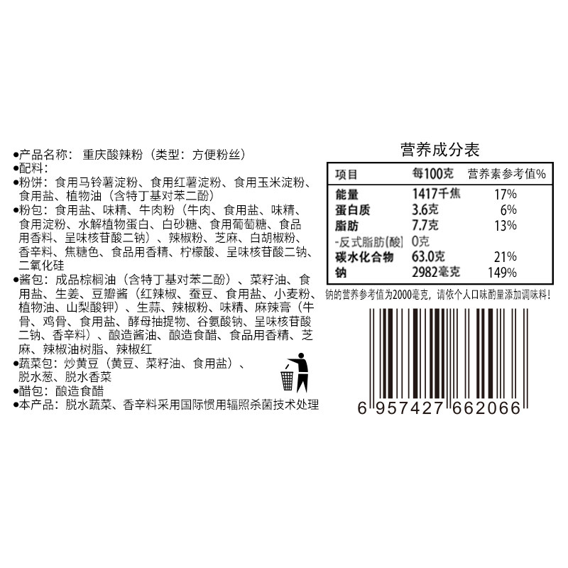 Hot and sour powder*3 bags (5 bags in total) hot and sour powder*4 bags (plus 1 pack of chongqing noodles) (10 bags in total) hot and sour powder*8 bags (2 packs of chongqing noodles)