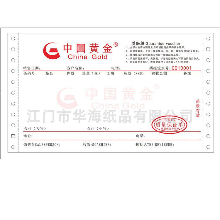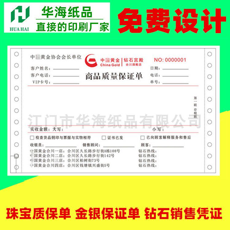 Jewelry single printing diamond repair card maintenance card after-sales guarantee card custom triple warranty delivery Sichuan