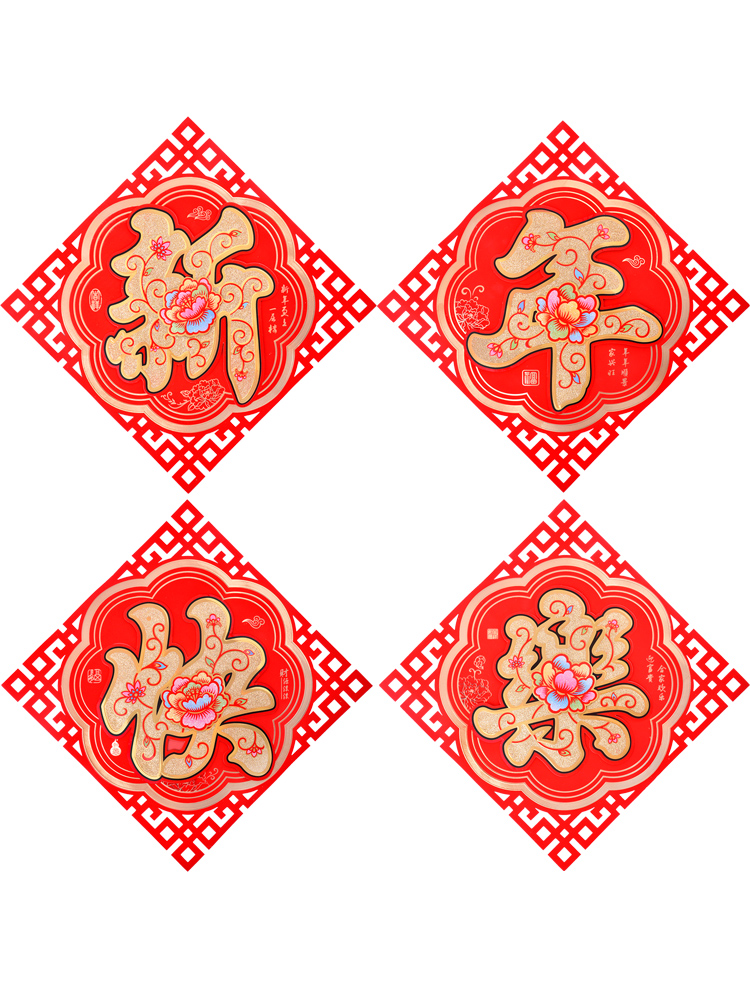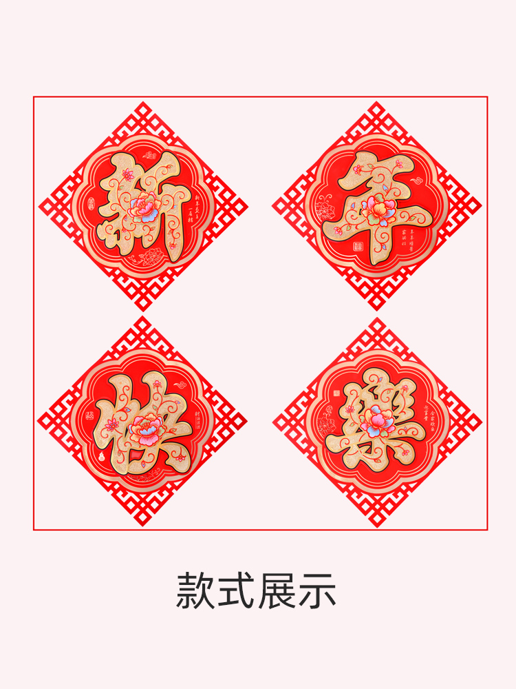 2022 Tiger years Spring Festival New Year Chinese New Year decorations New Year Happy Sticker door Amplitude Mall shop window Scene Placement Supplies